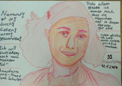 Annes Blumenkinder waren anlässlich des 95. Geburtstages von Anne Frank am 12. Juni in kleinen Gruppen im Stadtzentrum unterwegs. Sie nahmen 240,45€ ein, was an SOS-Kinderdörfer, Ärzte ohne Grenzen und an das Tierheim Mainz gespendet werden soll....