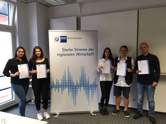Nach Abschluss ihrer Gemeinschaftsarbeit im Projekt „startup@school“ haben jetzt fünf Schüler der Anne-Frank Realschule plus in Mainz ihre IHK-Zertifikate bekommen.