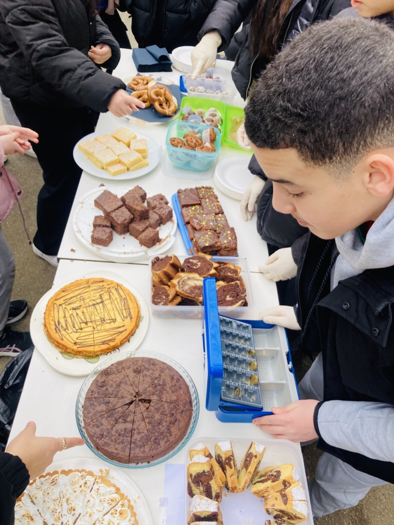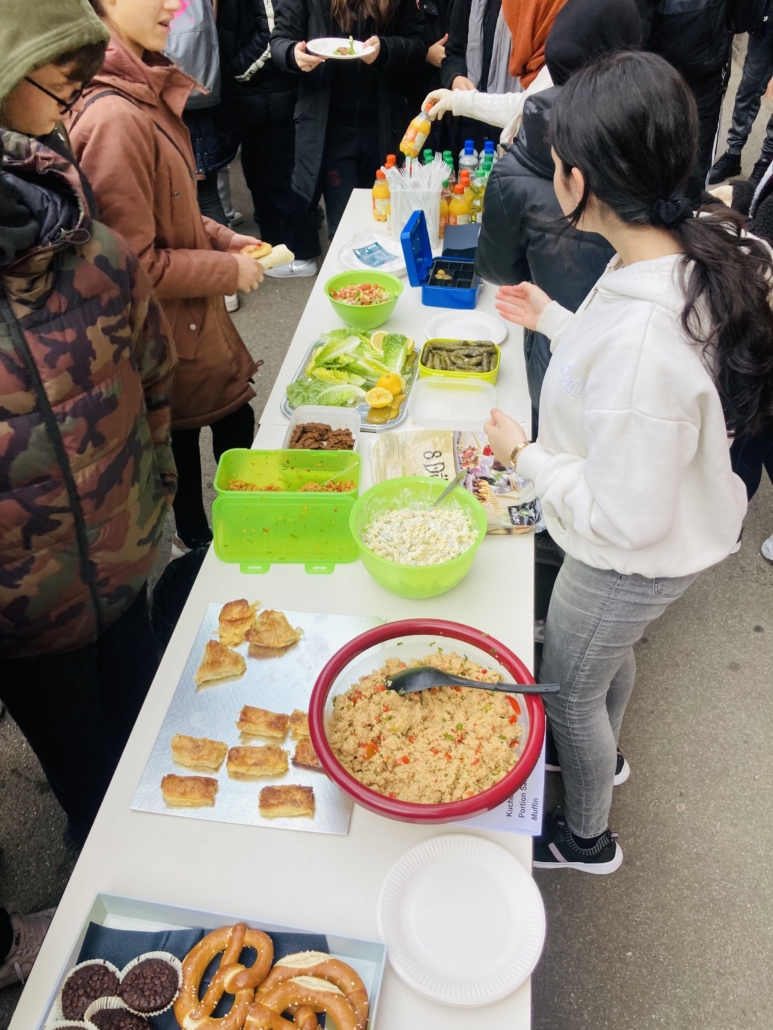 Tief betroffen von der Erdbebenkatastrophe in der Türkei und Syrien war es den Schülerinnen und Schülern der AFR+ ein großes Anliegen den Opfern zu helfen. Aus diesem Grund fand am vergangenen Donnerstag und Freitag (23.02. + 24.02.23) eine Spendenaktion statt, der in den Pausen großen Anklang fand. Dank engagierter Eltern, Schülerinnen und Schülern und Lehrkräften kamen zahlreiche Kuchenspenden und andere Leckereien zusammen. Somit war das Buffet von verschiedenen internationalen Köstlichkeiten geprägt.