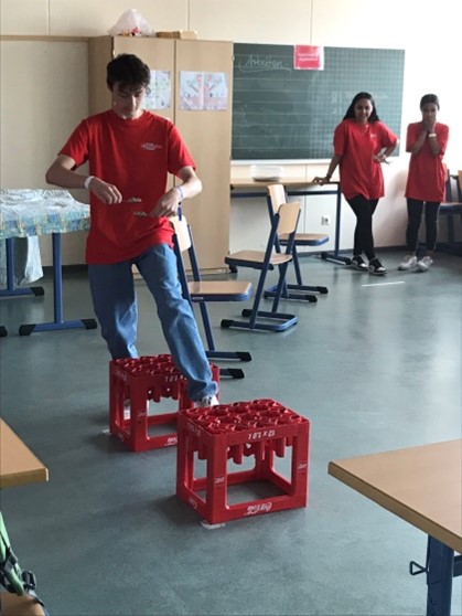Um 9.30 Uhr geht’s endlich los mit Sport+Spiel. Wer kann Papierflieger basteln und fliegen lassen? Wer kann Erbsen durch einen Parcours auf 2 Löffeln balancieren und wer hat ein gutes Gedächtnis?