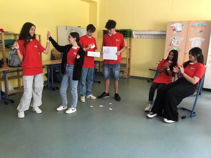 Aber dann geht’s weiter zu den Kinderrechten im Standbild. Eine erfolgreiche Klassensprecherwahl mit guten Verlierern ist das Thema.