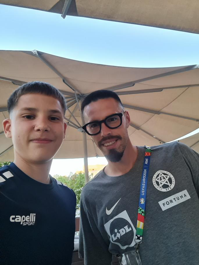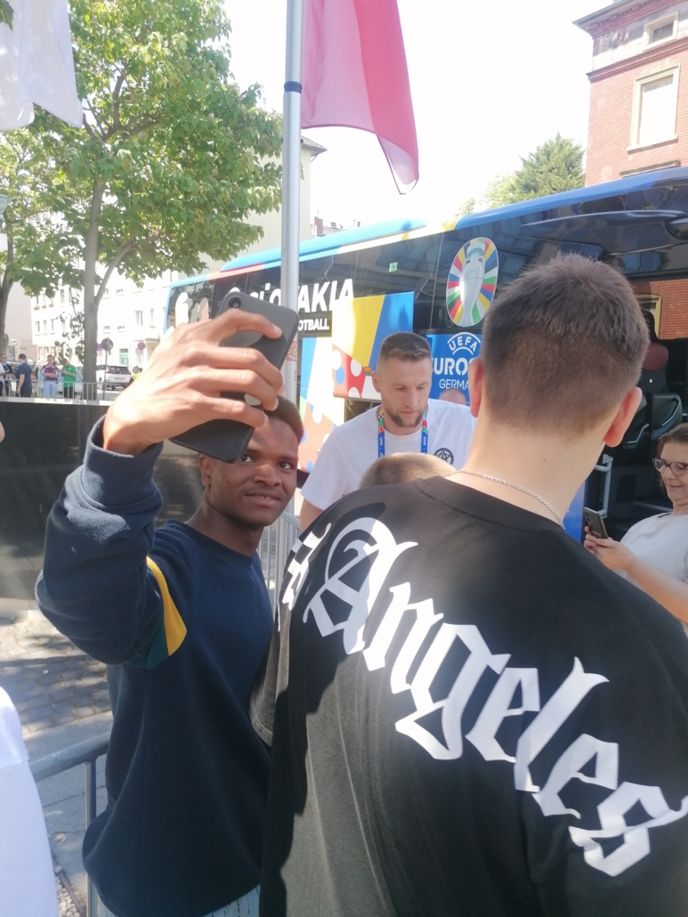 Die slowakischen Superstars Milan Skriniar (Paris St. Germain) und Marek Hamsik (136 Länderspiele, Kapitän, 408 Ligaspiele für den SSC Neapel) nehmen sich für die AFR-Schüler Zeit….“Selfies“ und Autogramme gerne doch.