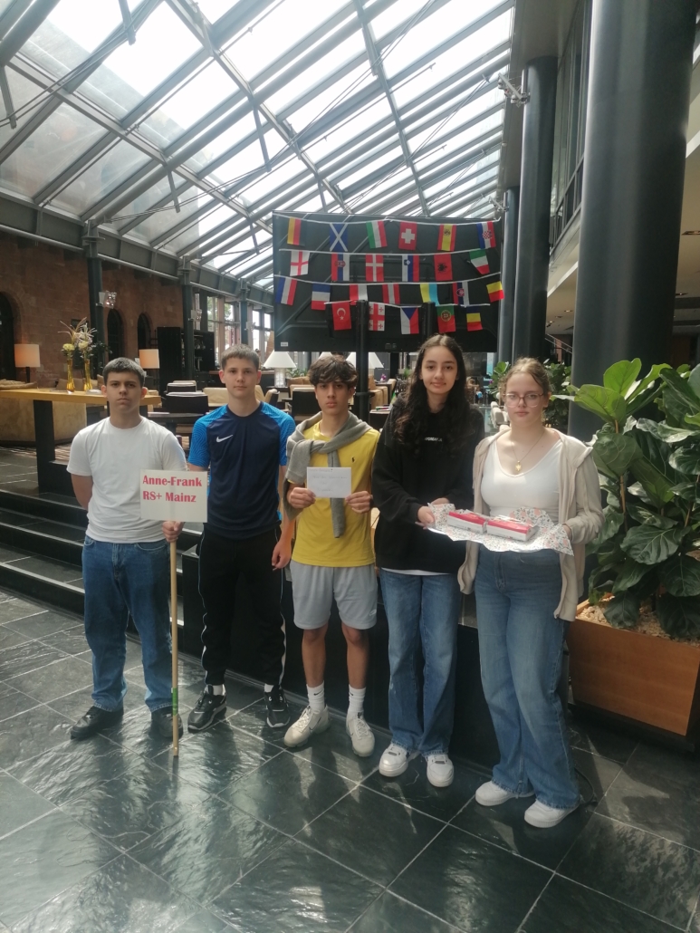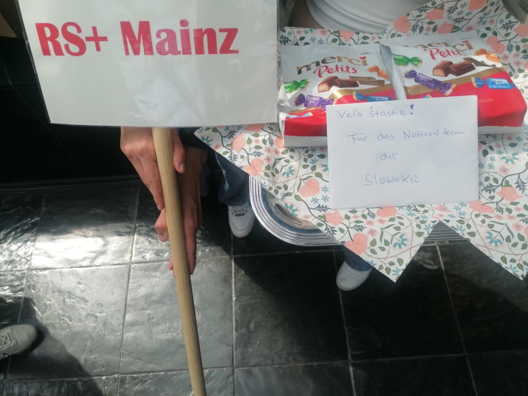 Eine Delegation der Anne-Frank-Realschule plus Mainz besuchte die slowakische Nationalmannschaft im Hyatt-Hotel. Die Schülerinnen und Schüler wünschten dem Team einen angenehmen Aufenthalt in der Landeshauptstadt und viel Erfolg bei den Spielen der Europameisterschaft.