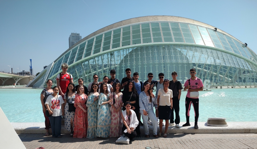 Dieses Jahr konnten 25 Schülerinnen und Schüler der Anne-Frank-Schule an einer Erasmus+ Studienfahrt nach Valencia, Spanien, teilnehmen. Die Reise gab uns die Möglichkeit, viele schöne Orte zu besuchen und an interessanten Aktivitäten teilzunehmen. Wir waren an der Schule „IES La Marxadella“ in Torrent, wo wir ein Projekt zum Thema Umwelt durchführten. Dabei arbeiteten wir an verschiedenen Arbeitsblättern und erstellten Plakate. So kamen wir ins Gespräch mit den spanischen Schülern. Wir unterhielten uns auf Englisch und teilweise auf Spanisch. Es hat viel Spaß gemacht, da sich alle gut verstanden haben und es keine Schwierigkeiten gab.